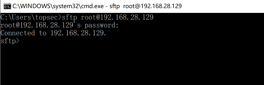 Windows服务器上执行命令:sftp 用户@Linux ip