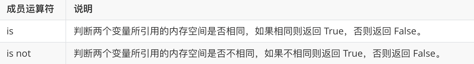 var1 = 56 var2 = 56 res = var1 == var2 # (判断两个值是否相等) res = var1 is var2 # (判断两个值得地址是否相等)