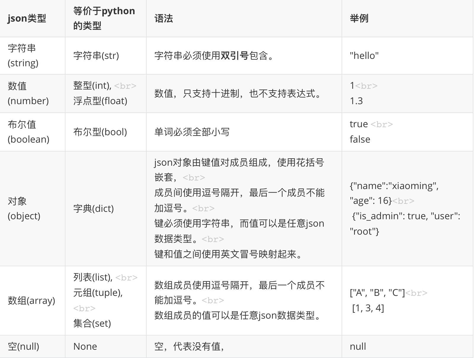 是一种轻量级的数据交换格式,易于人阅读和编写,常用于不同平台,不同编程语言之间进行数据传输,也常用于对编程开发过程中的数据存储结构或项目配置文件。 注意:在python中默认就是符合json语法的字符串数据。json提供了json字符串与其他数据格式之间的序列化和反序列化操作 |