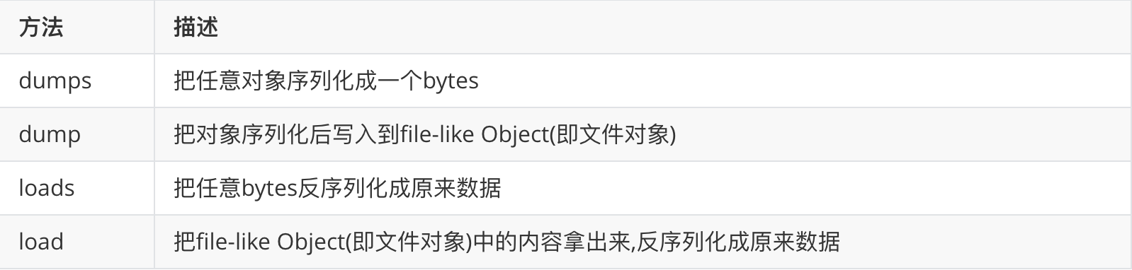 pickle类型处理数据后的数据是二进制的,所以对于数据相对于json格式而言,更加紧凑(避免json空行占空间),性能更好。 |