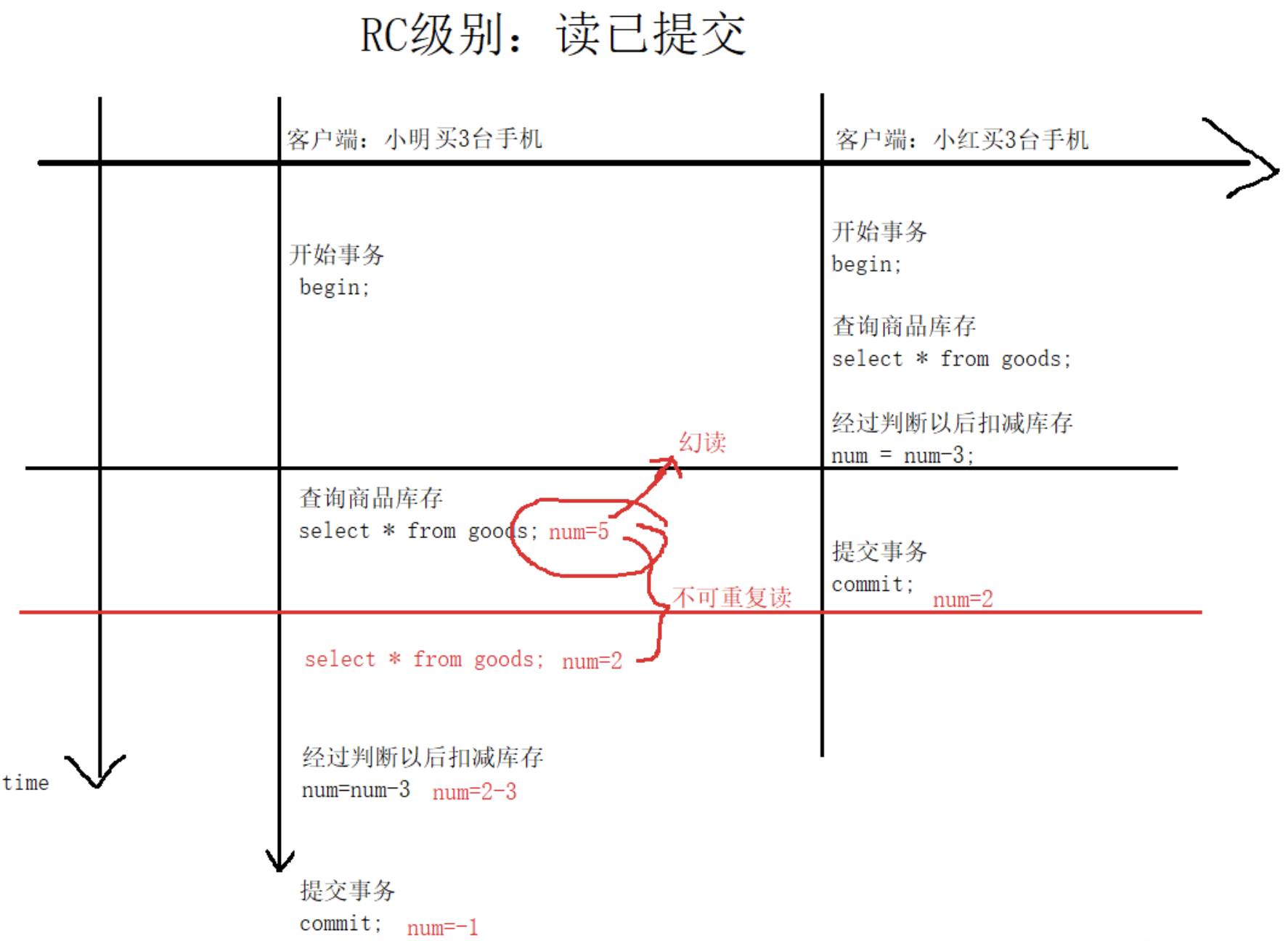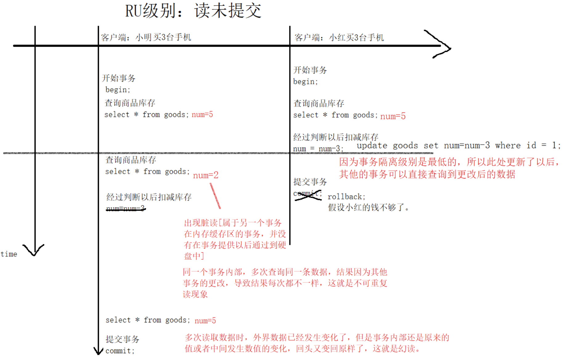 在事务A中,读取到张三的工资为5000,操作没有完成,事务还没提交。