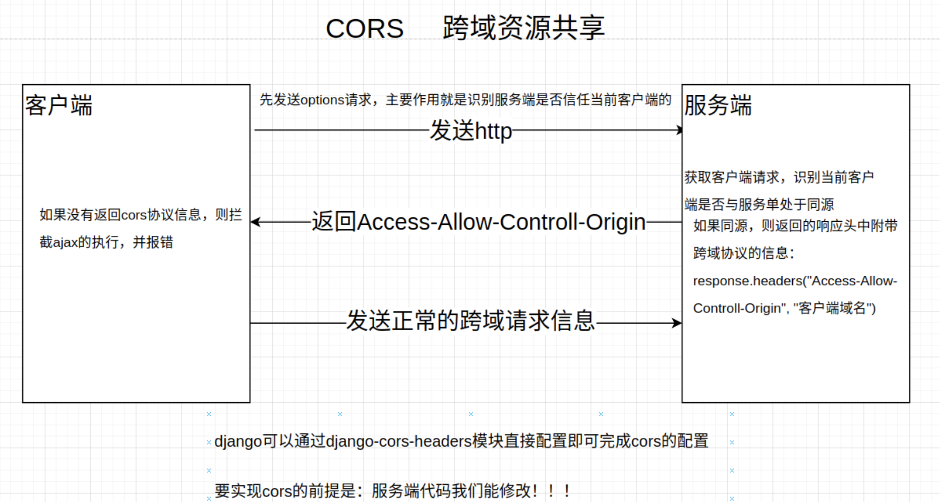 1 cors方案,W3C维护的一个跨域资源共享的协议。这个协议要求服务端通过响应头的方式告知浏览器,当前跨域访问的客户端是否属于可信任客户端。cors方案的使用前提是服务端已经支持了cors。