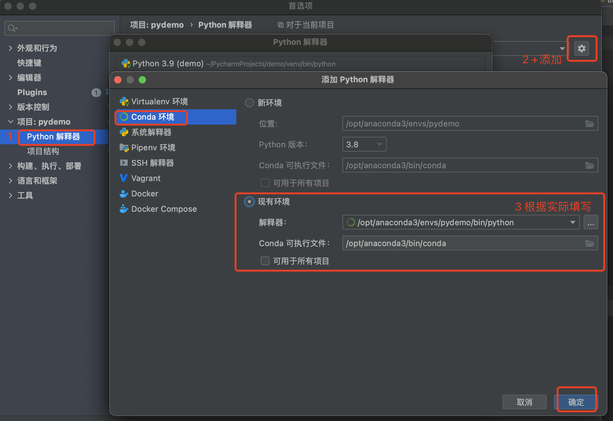 1 创建pydemo虚拟环境,务必要指定python解析器的版本