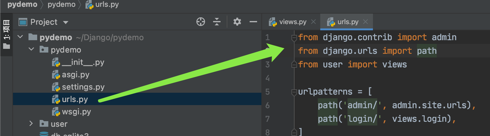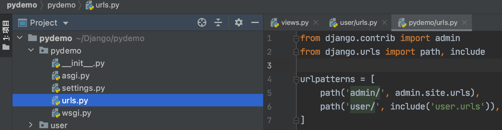 django-admin startproject pydemo # pydemo 就是项目目录名