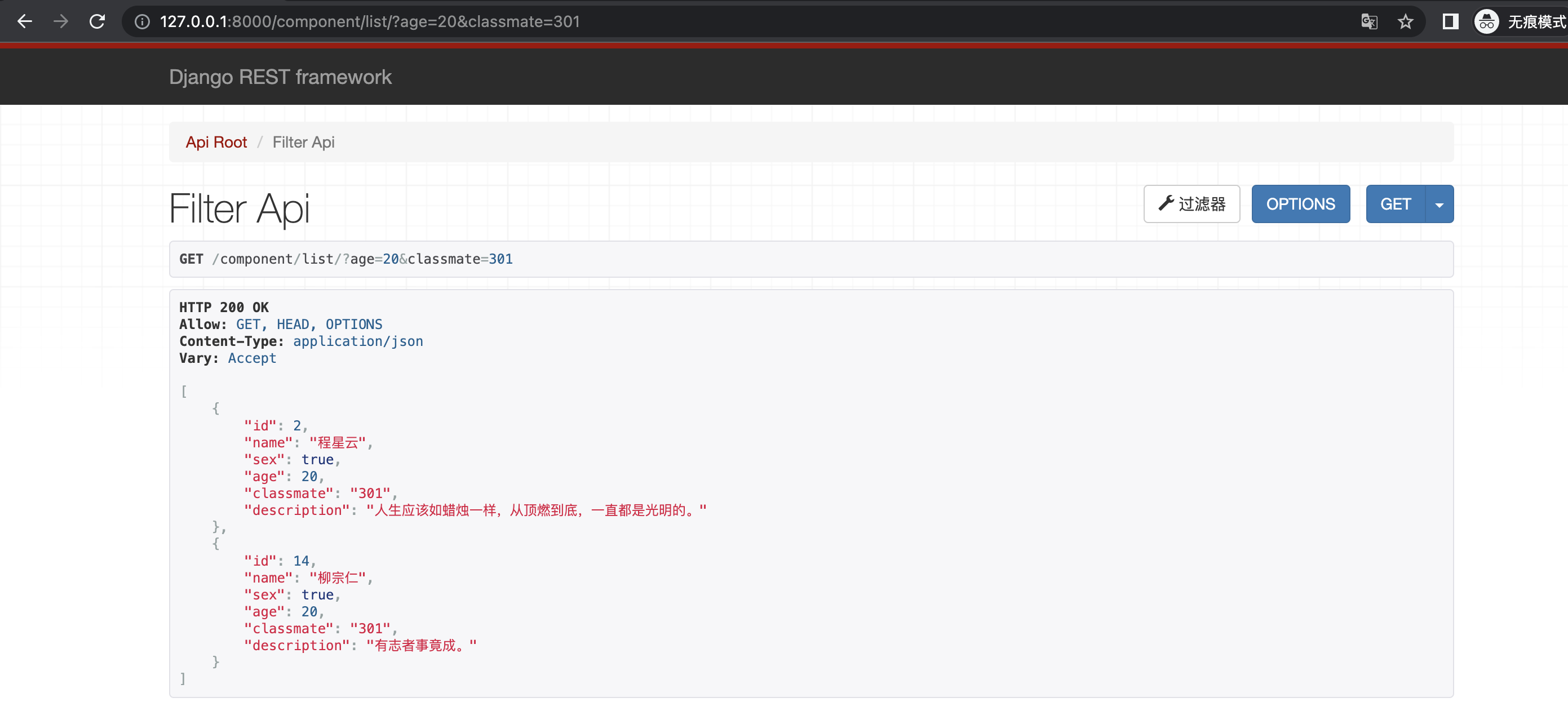 4 访问地址:http://127.0.0.1:8000/component/student1/?identity=vvip
