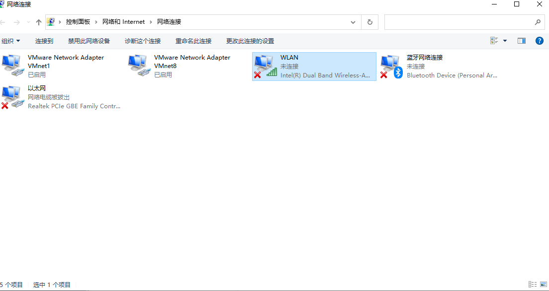 在控制面板,网络和Internet中,更改适配器选项,找到目前现在连接的网络;