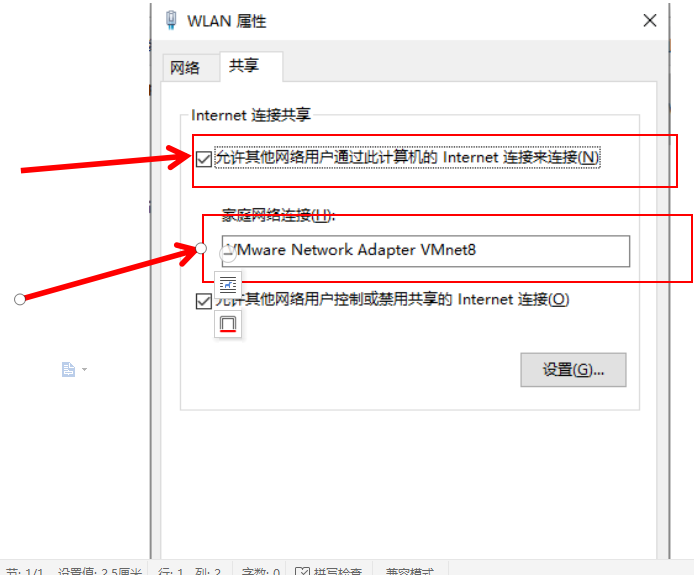 在上面右击--属性--共享,在允许其他网络用户通过此计算机的Internet来连接中勾选。并点击确定,如下图所示: