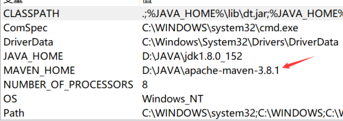 新建系统变量 MAVEN_HOME 变量值:D:\JAVA\apache-maven-3.8.1