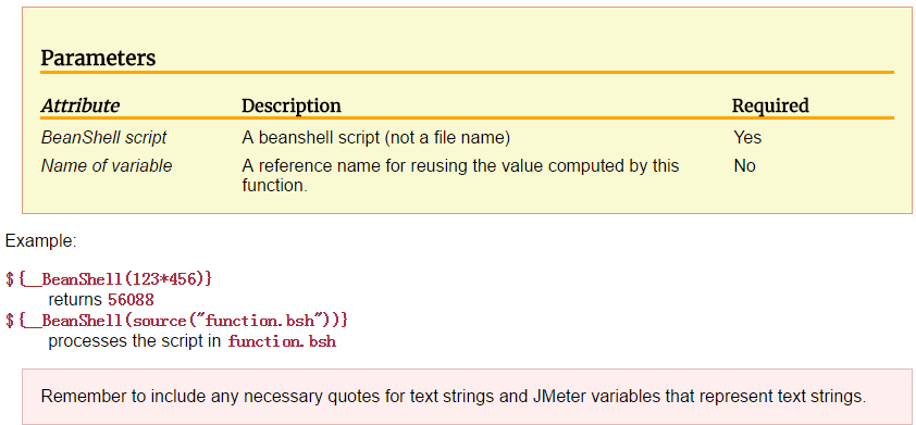 与beanshell元件比较:该函数与beanshell元件(beanshell sampler、beanshell preprocess等)作用是一样的,只是beanshell函数更常用于一些简单的判断或计算等,可以把少量的脚本放在函数中直接赋值给一个变量,而不用总是添加beanshell元件
