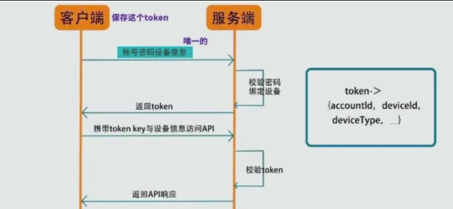 2.服务端就可以通过token找到与它绑定的账号与设备信息,然后把绑定的设备信息与客户端每次传来的设备信息进行比较, 如果相同,那么校验通过,返回API接口响应数据, 如果不同,那就是校验不通过拒绝访问。