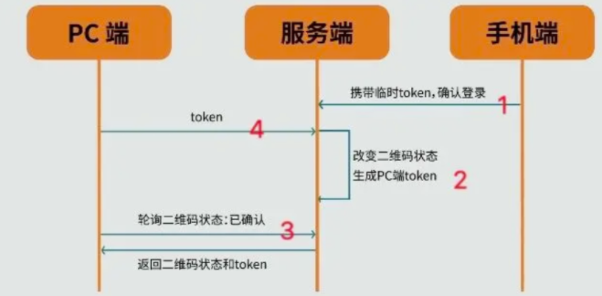 在第三步骤中返回临时token,为的就是手机端在下一步操作时,可以用它作为凭证。以此确保扫码,登录两步操作是同一部手机端发出的。