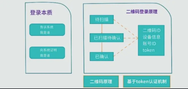 然后我们以二维码状态为轴,分析了这背后的逻辑: 通过token认证机制与二维码状态变化来实现扫码登录。