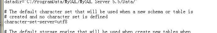 1 找到本地mysql安装路径下的my.ini文件,打开后看到