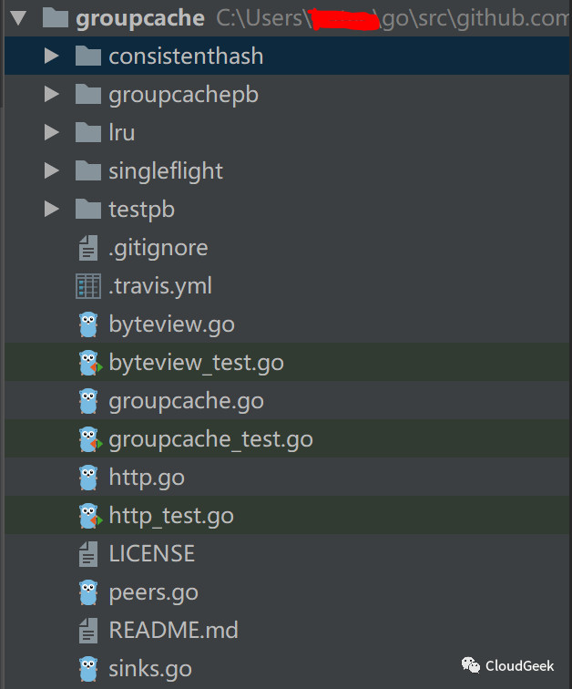 咋一看不太直观,consistenthash是一致性哈希,groupcachepb应该是和Protocol Buffers有关系,lru是最近最少使用淘汰算法,singleflight是单航班,什么是单航班后面看了代码再来理解吧~,testpb和groupcachepb一样,pb结尾和Protocol Buffers逃脱不了干系了。剩下的一堆根目录的源码文件啥的肯定是各种调用上面说到的几个包,所以这里我们先看最上面的5个文件夹(package)分别是什么内容,分模块攻破之后再看外层调用逻辑,把知识点再串联到一起。