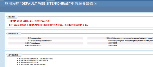 IIS报错:HTTP 错误 404.2 - Not Found 由于Web服务器上的”ISAPI和CGI限制”列表设置,无法提供您请求的页面