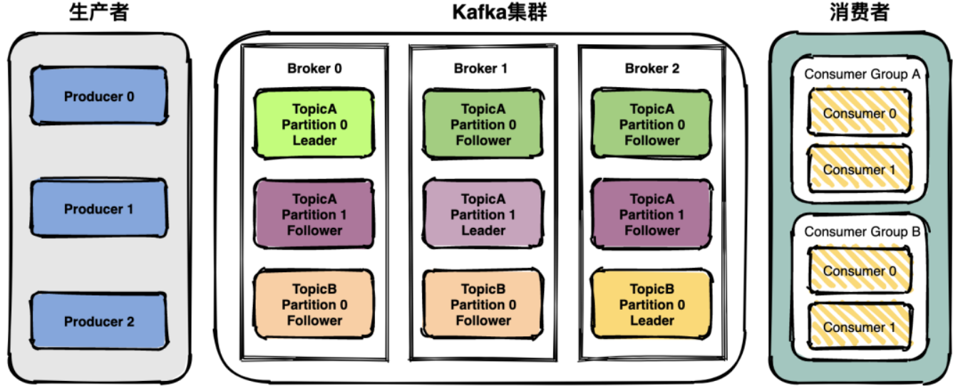 多个follower副本通常存放在和leader副本不同的broker中。通过这样的机制实现了高可用,当某台机器挂掉后,其他follower副本也能迅速”转正“,开始对外提供服务。