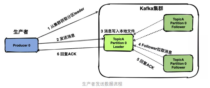 - 生产者是与leader直接交互,所以先从集群获取topic对应分区的leader元数据;