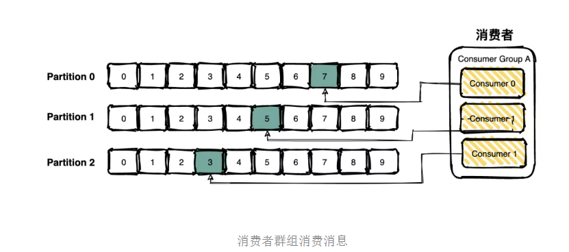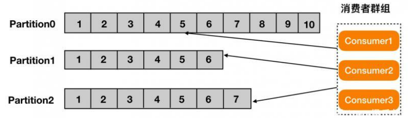 多个消费者可以组成一个消费者组(consumer group),每个消费者组都有一个组id。同一个消费组者的消费者可以消费同一topic下不同分区的数据,但是不会出现多个消费者消费同一分区的数据。