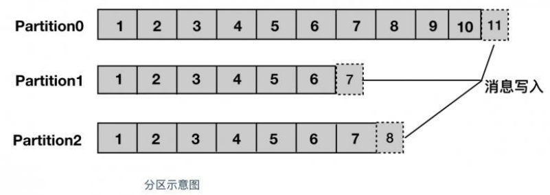 Topic中的消息被分割为一个或多个的 partition,是物理上的概念。消息以追加的形式写入分区,以先后顺序的方式读取。