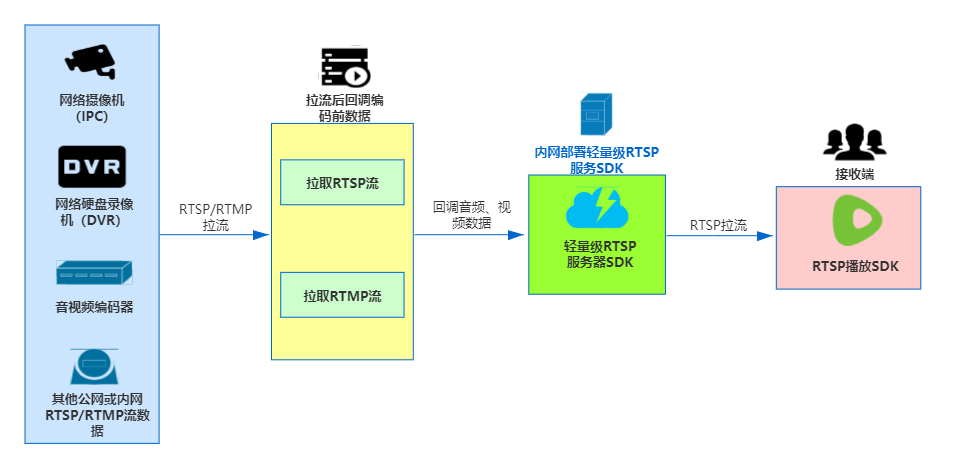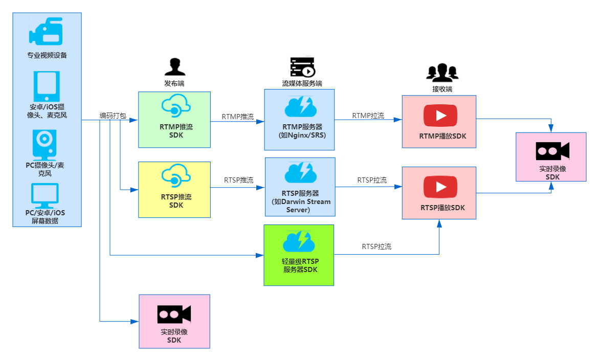 简单来说,之前推送端SDK支持的功能,内置轻量级RTSP服务SDK后,功能继续支持。