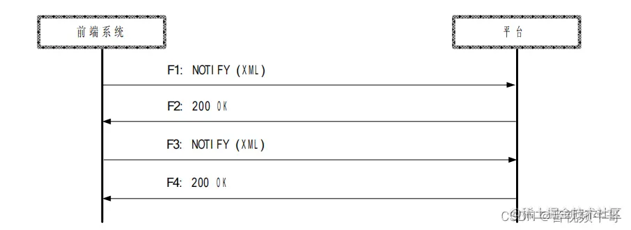 NOTIFY sip: 前端系统所属平台地址编码@前端系统所属平台域名或IP地址 SIP/2.0