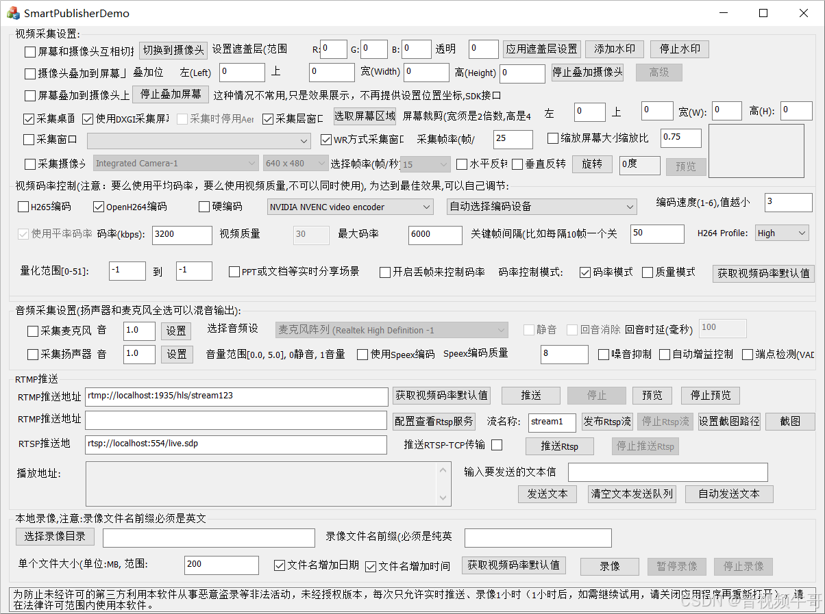 支持多平台采集(摄像头 / 屏幕 / 麦克风 / 扬声器 / 外部源);