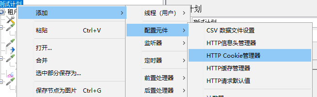 三、线程中添加调试取样器去查看Cookie是否提取成功 ,添加方式:右击线程-添加-取样器-调试取样器