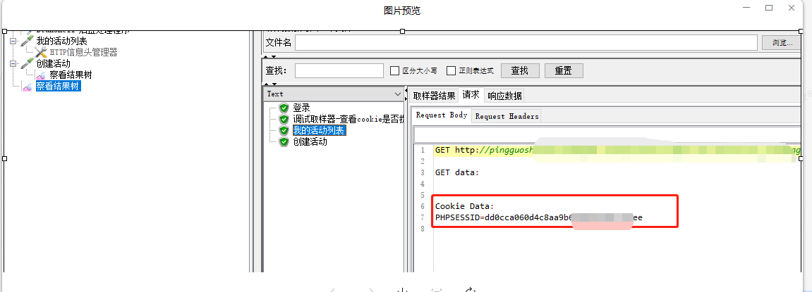 在初步使用Jmeter进行接口梳理时发现项目登录接口不是像之前接触的直接在响应体中返回token,而是以sessionid是存放在响应头中的Set-Cookie的,经过查找文档后发现可以通过jemeter的正则表达式提取器登录接口的Set-Cookie。活动列表接口需要使用登录接口的cookie。具体操作如下