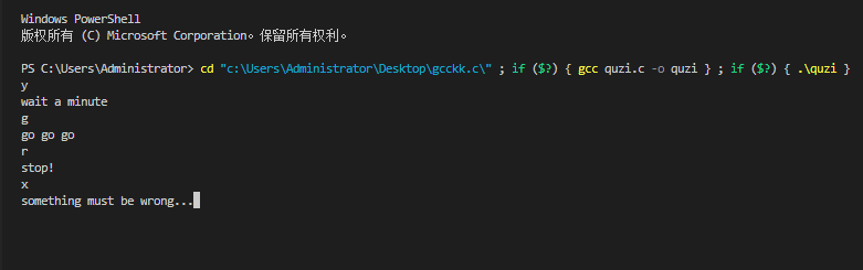 { printf("something must be wrong...\n"); } c = getchar(); } return 0; }