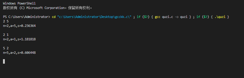 #include<stdio.h> #include<stdlib.h> #include<math.h> int main() { int n, a; double i, s,b; while (scanf_s("%d%d", &n, &a) != EOF) { for (s = 0, b = 0, i = 1; i <= n; i+ { b=b+a * pow(10, i - 1); s += i / b; } printf("n=%d,a=%d,s=%f\n\n", n, a, s); } return 0; }