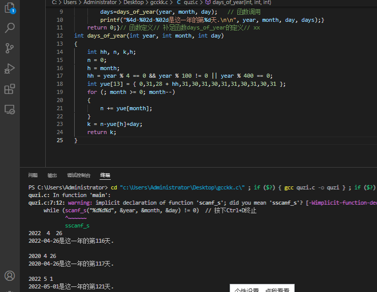 return 0;}// 函数定义// 补足函数days_of_year的定义// xx