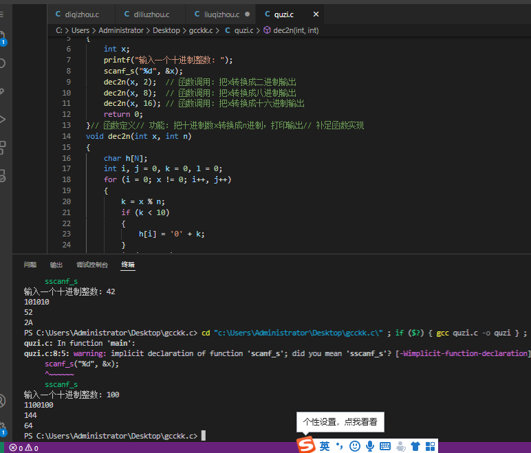 void dec2n(int x, int n); // 函数声明