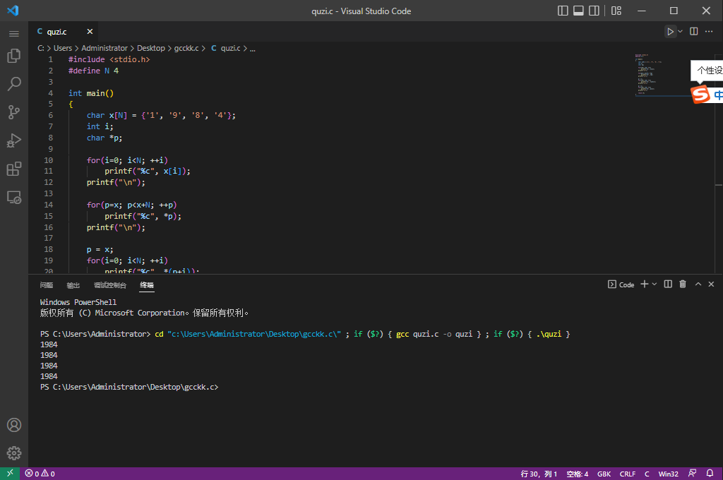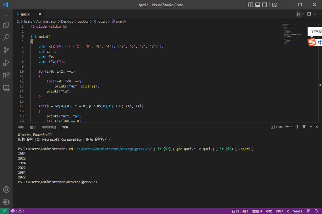 char x[2][4] = { {'1', '9', '8', '4'}, {'2', '0', '2', '2'} };