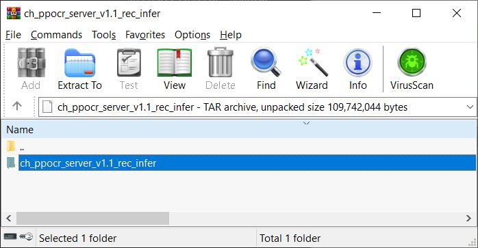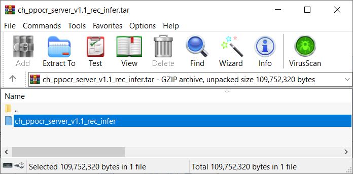 1. 使用WinRAR软件打开ch_ppocr_server_v1.1_rec_infer.tar文件如下图所示: