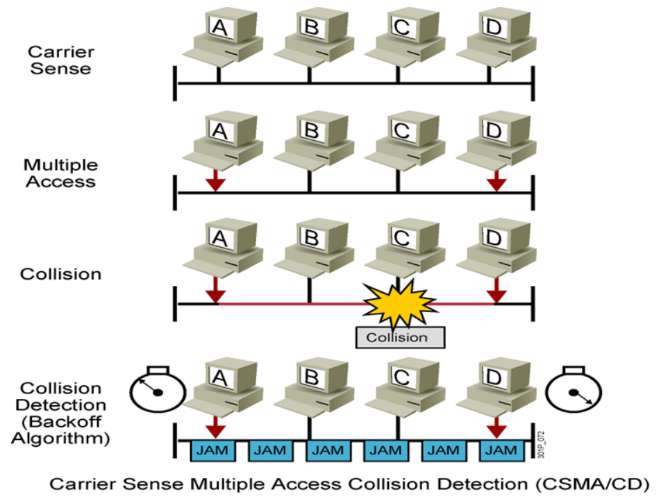 总线拓扑:所有设备均可接收信号