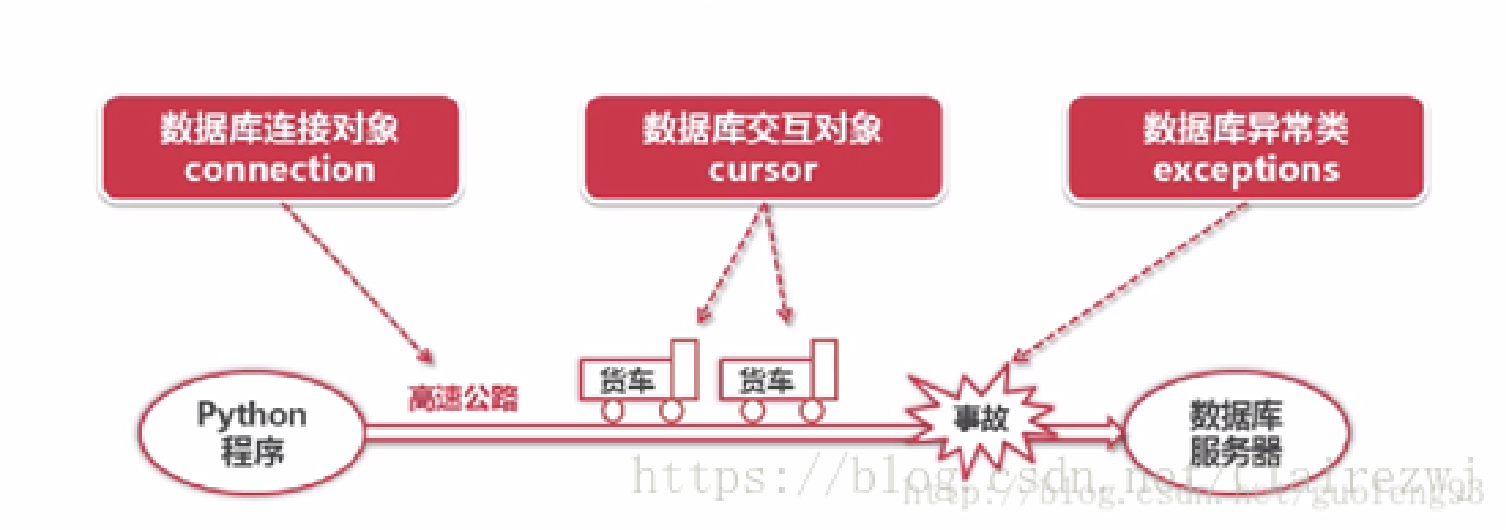 》》》如图所示如果把python 和数据库比作两个不同的地点, connection 就是路, 能连接python和database。cursor就像在路上行驶的小货车, 可以用于执行sql 语句, 以及存储sql 运行的结果。