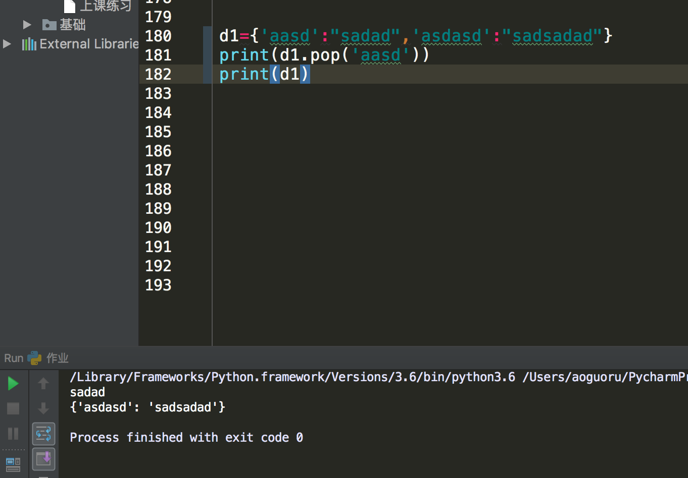 pop方法用来获得对应于给定键的值,然后将这个键值对从字典中移除