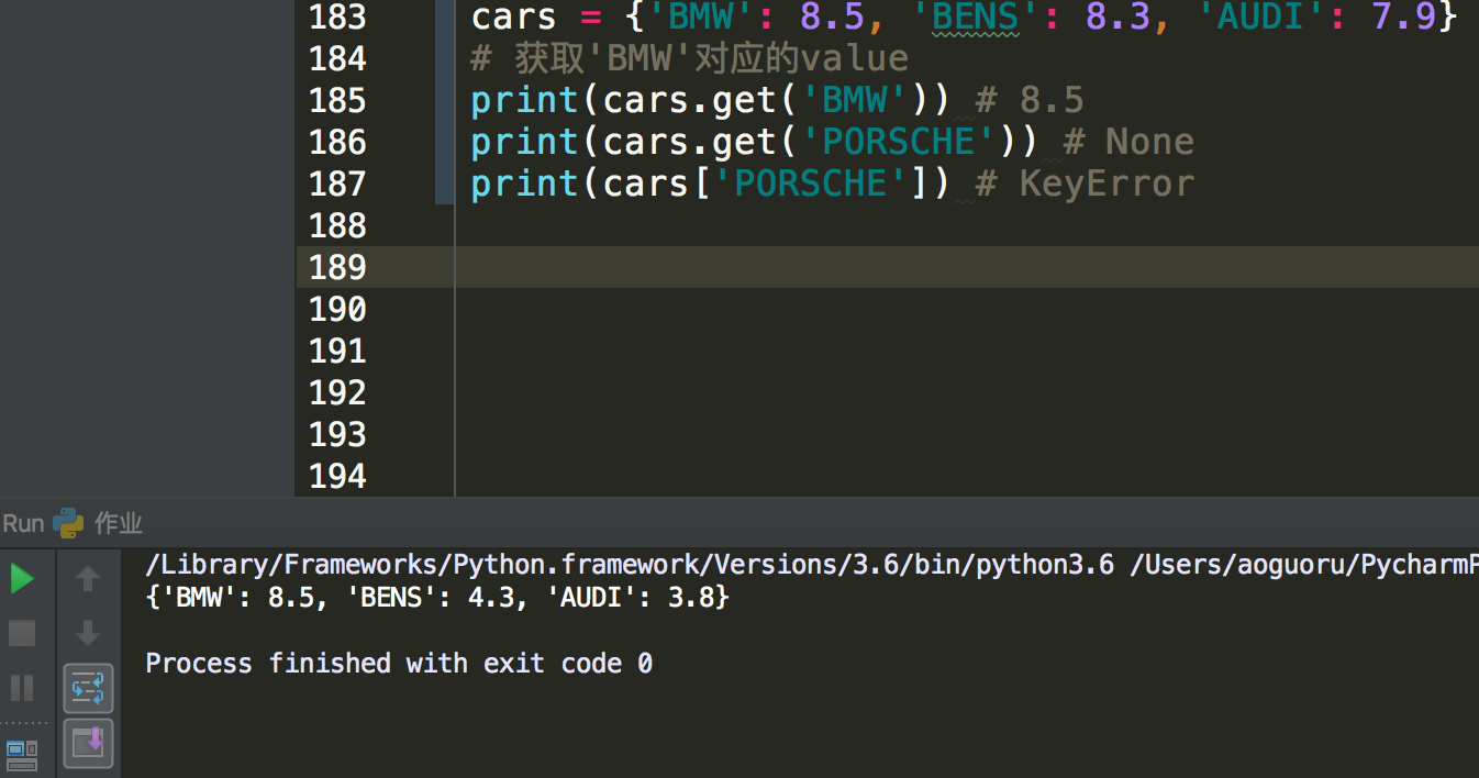 get() 方法其实就是根据 key 来获取 value,它相当于方括号语法的增强版,当使用方括号语法访问并不存在的 key 时,字典会引发 KeyError 错误;但如果使用 get() 方法访问不存在的 key,该方法会简单地返回 None,不会导致错误。例如如下代码: