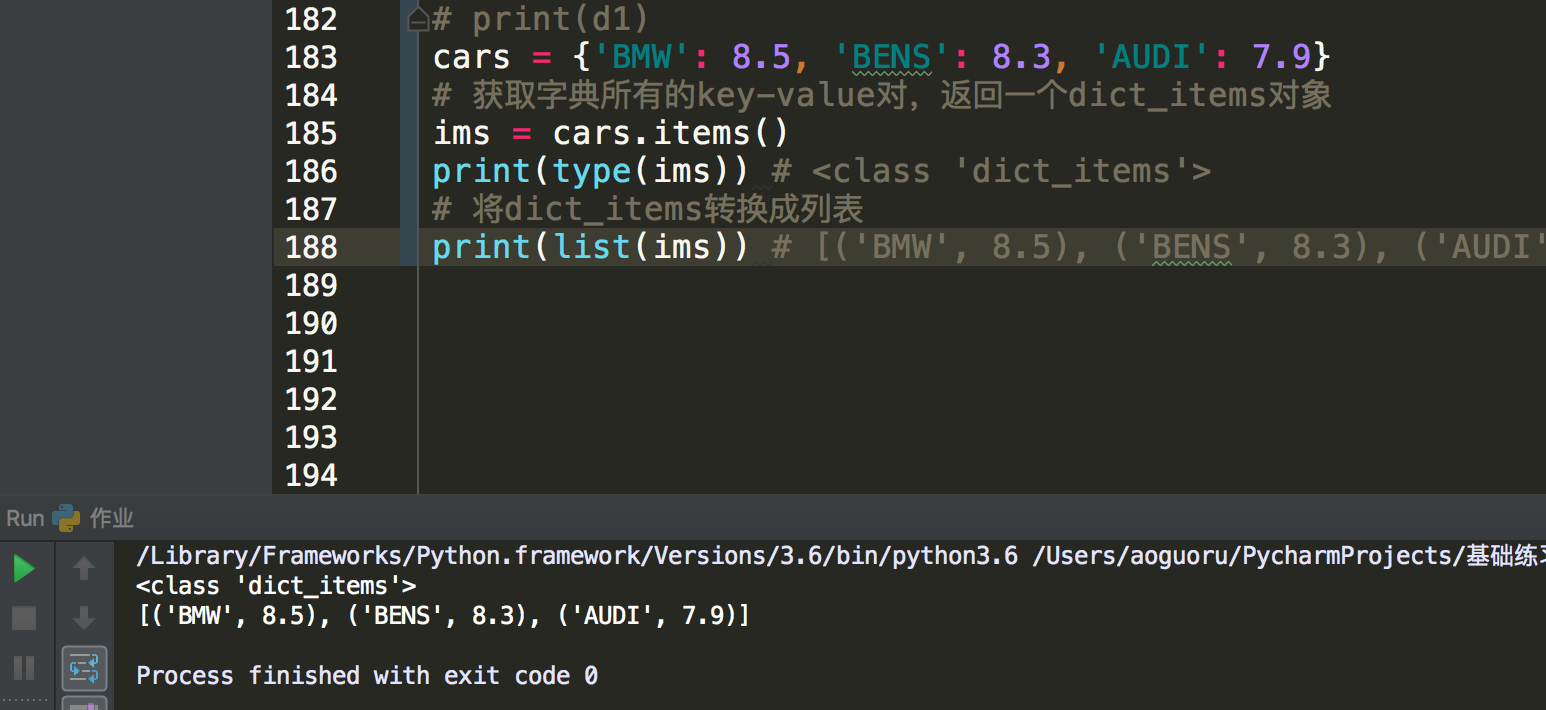 items()用于获取字典中的所有 key-value 对、所有 key、所有 value。返回 dict_items对象,Python 不希望用户直接操作这几个方法,但可通过 list() 函数把它们转换成列表。如下代码示范了这个方法的用法: