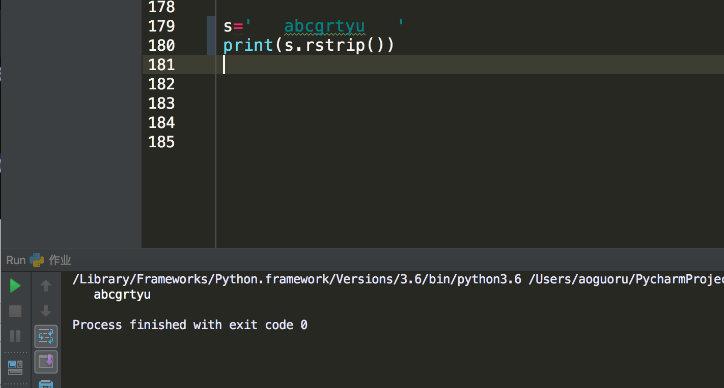 rstrip()方法:去除字符串前面(右侧)的空格或特殊字符