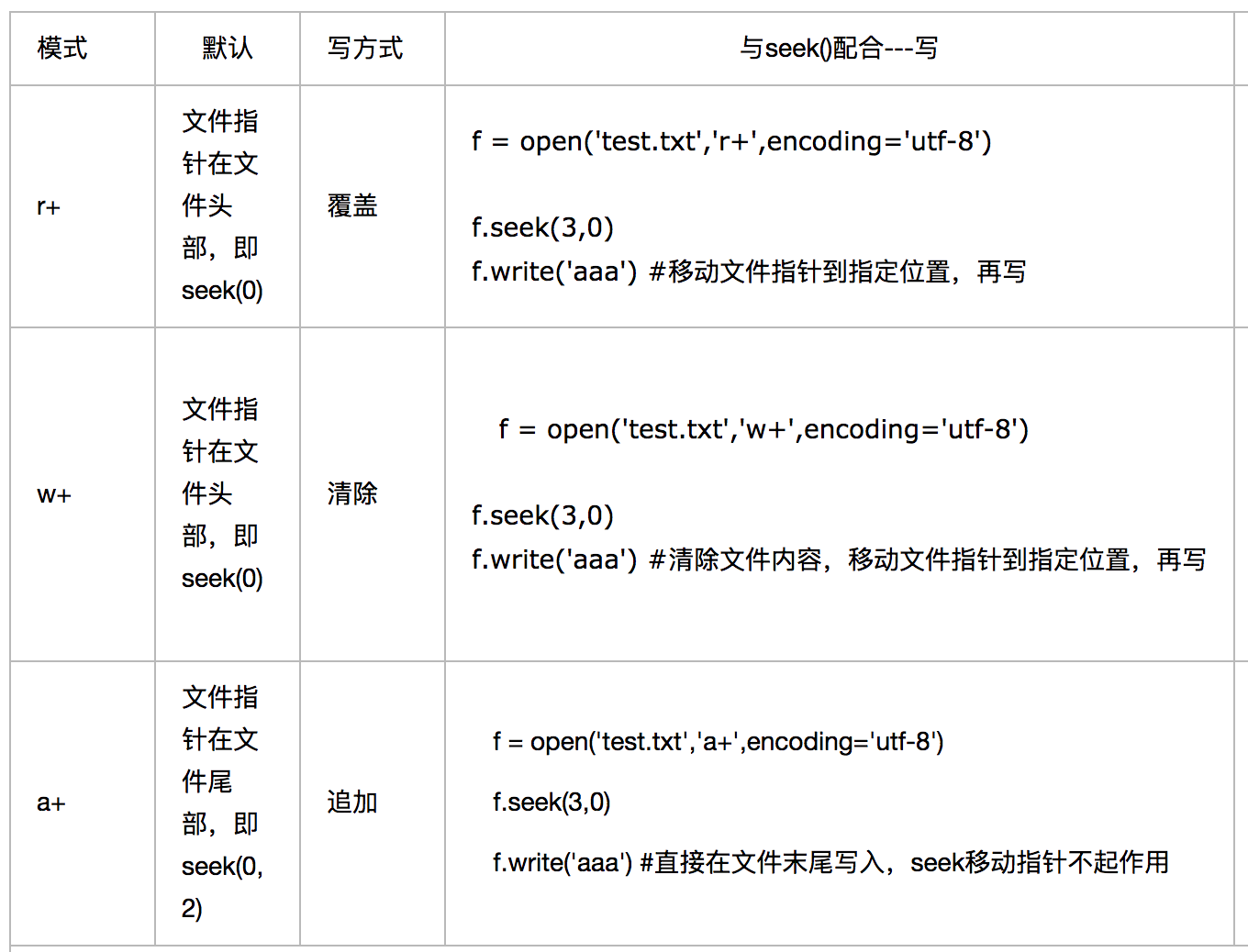 python中可以使用seek()移动文件指针到指定位置,然后读/写。通常配合 r+ 、w+、a+ 模式,在此三种模式下,seek指针移动只能从头开始移动,即seek(x,0) 。