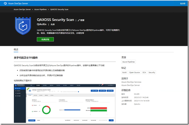 为了实现Azure DevOps Server和奇安信开源卫士的集成,奇安信公司开发了一款Azure DevOps Server扩展插件,名称为“QAXOSS Security Scan”
