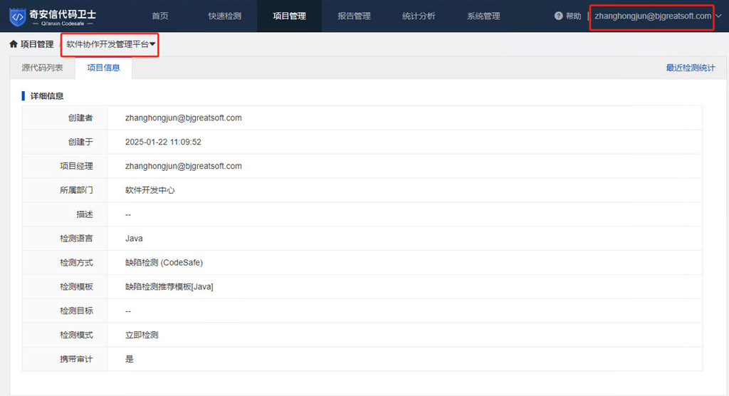 首先,我们需要在奇安信代码卫士服务器中创建一个用于扫描的项目,这里我们映射为对应的信息系统