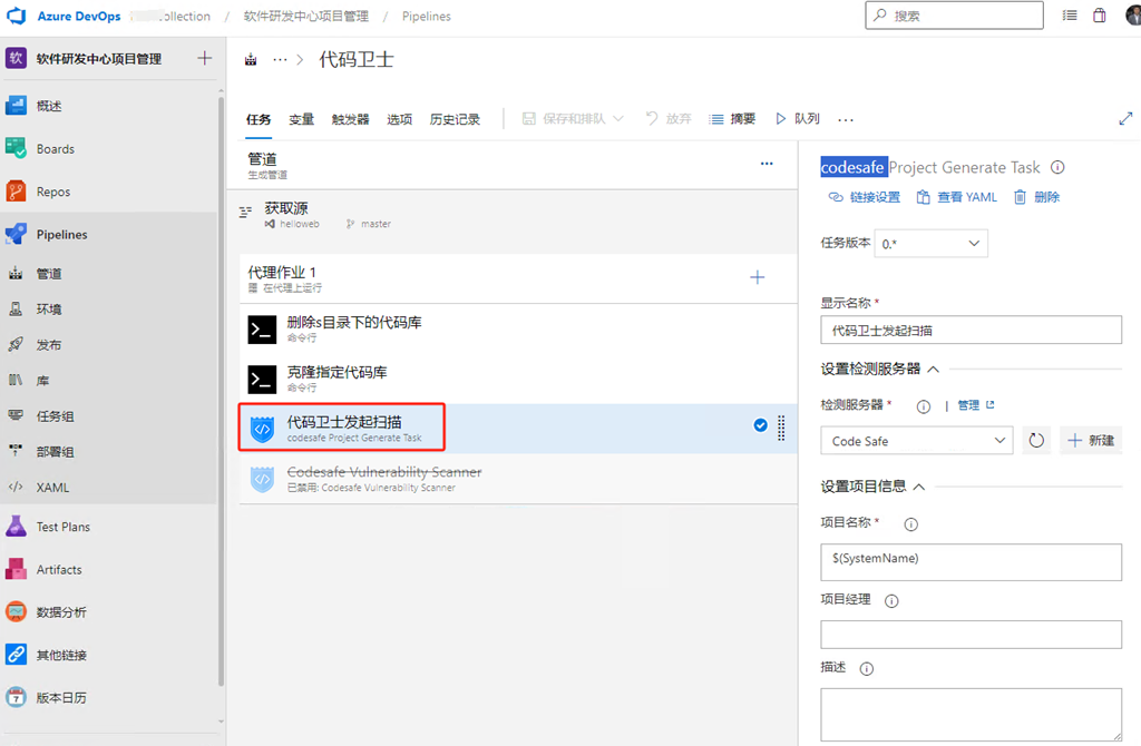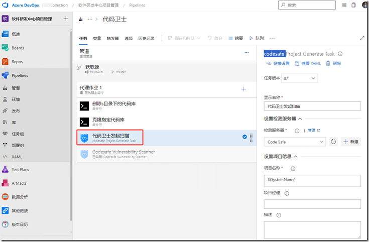 Azure DevOps Server:集成奇安信代码卫士(Code Safe)