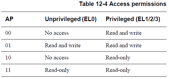 访问权限主要有读写,由EL0-3控制,如下所示: