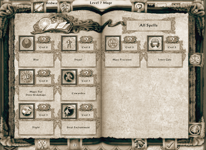 《英雄无敌》4里的回城术,不象前面1、2、3代那样,如果最近的城堡被占,就有Nearest Town Occupied的提示,它的回城术总是可以成功的,因为它可以让英雄回到稍远一点城堡,并且每个城堡门口可以站4组队伍,而游戏中只能最高8支队伍,这样只要两个城堡就一定回城术使用成功。缺少提示后,怎么去找线索呢?是个问题!