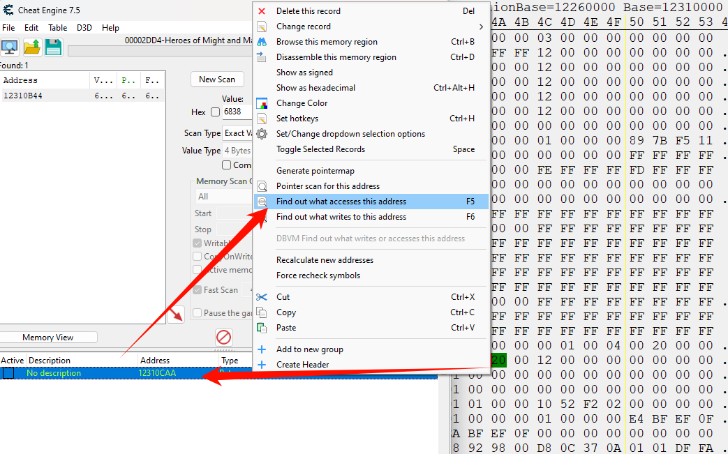这时可以用CE修改它,再看英雄的魔法书,就会知道20那个字节就是回城术。知道了回城术的魔法地址了,选中这个地址,将其添加到列表中。