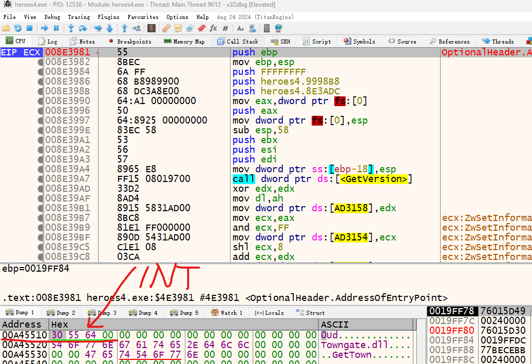 修改PE入口点方式注入自己编写的DLL——《英雄无敌》1代小回城术修改成大回城术