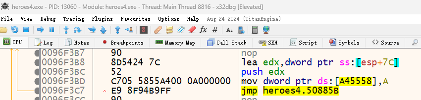 X32dbg打开游戏,来到上面的00865C9E,向上寻找子程序起始位置,在此下断