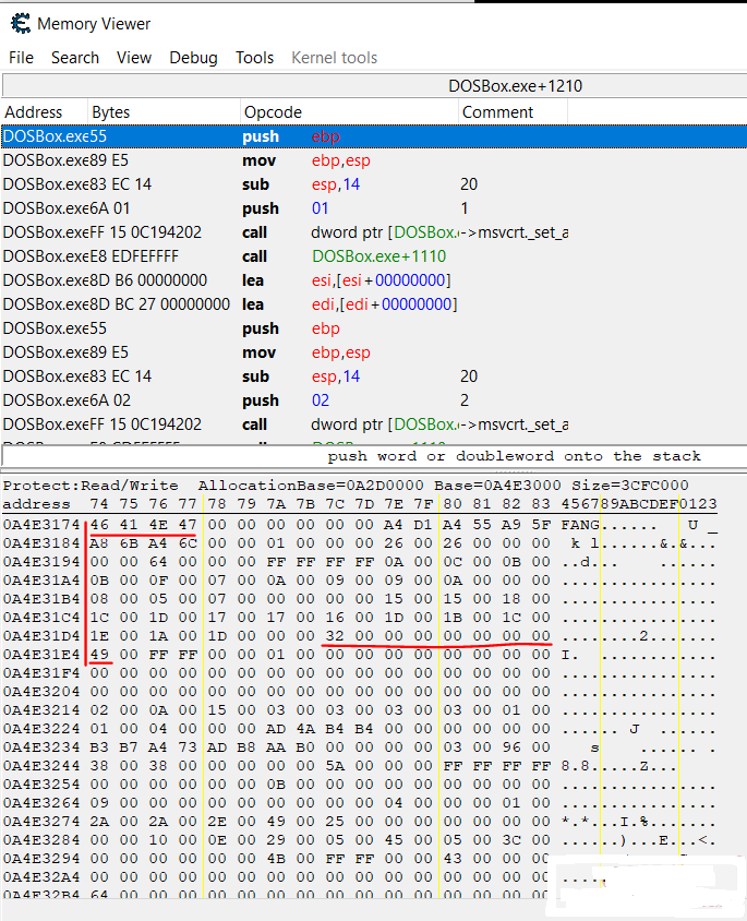 直接点击菜单文件下的电脑图标,再按照下图(选择运程),选择dosbox,选择打开。然后按上图上面圈选的,点击观察内存。